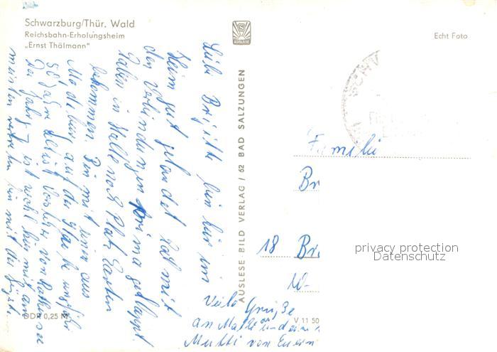 72925735 alte Postkarte Schwarzburg Thueringer Wald Reichsbahn-Erholungsheim Ernst Thaelmann postalisch gelaufen Erhaltung siehe scans [PaolaD17] KatCode: 11110016073082