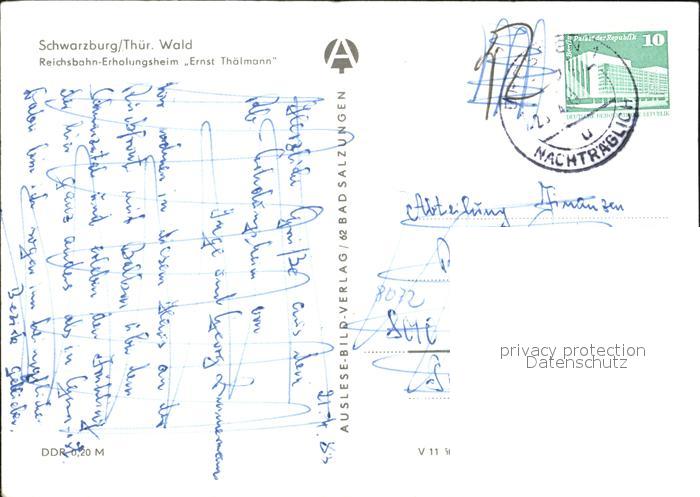72474177 alte Postkarte Schwarzburg Thueringer Wald Reichsbahn Erholungsheim Ernst Thaelmann postalisch gelaufen Erhaltung siehe scans KatCode: 11110016073082