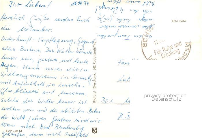 72927044 alte Postkarte Schwarzburg Thueringer Wald Reichsbahnerholungsheim Ernst Thaelmann postalisch gelaufen Erhaltung siehe scans [WerneD78] KatCode: 11110016073082