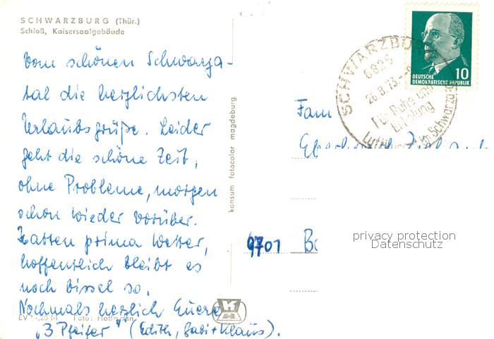 73765007 alte Postkarte Schwarzburg Thueringer Wald Schloss Kaiseersaalgebaeude postalisch gelaufen Erhaltung siehe scans [WerneD78] KatCode: 11110016073082