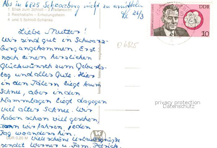 72937449 alte Postkarte Schwarzburg Thueringer Wald Schloss Schaenke Reichsbahn Erholungsheim postalisch gelaufen Erhaltung siehe scans [FriedD77] KatCode: 11110016073082