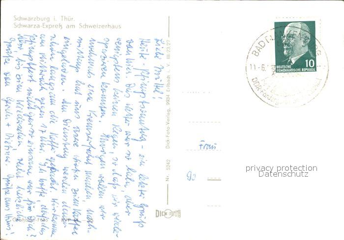 71942021 alte Postkarte Schwarzburg Thueringer Wald Schwarza Express am Schweizerhaus postalisch gelaufen Erhaltung siehe scans KatCode: 11110016073082