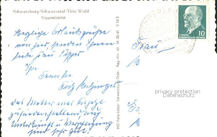 72387221 alte Postkarte Schwarzburg Thueringer Wald Schwarzatal Trippsteinblick postalisch gelaufen Erhaltung siehe scans KatCode: 11110016073082