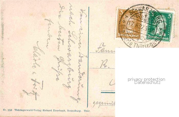 72763517 alte Postkarte Schwarzburg Thueringer Wald Strassenpartie postalisch gelaufen Erhaltung siehe scans [LiesaD40] KatCode: 11110016073082