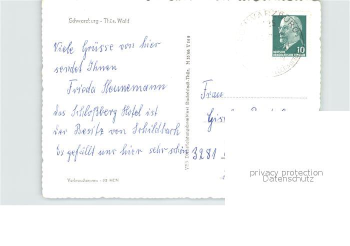 72526371 alte Postkarte Schwarzburg Thueringer Wald Teilansicht postalisch gelaufen Erhaltung siehe scans KatCode: 11110016073082