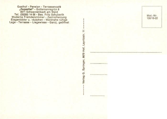 73941317 Schwarzenbach am Wald Gasthof Pension Zegasttal Terrassen-Café postalisch nicht gelaufen Erhaltung siehe scans [FriedD77] Frie Katcode 11110009475169