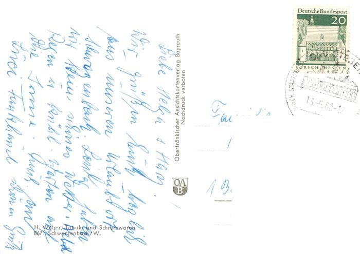 73924369 Schwarzenbach am Wald Panorama Teilansichten Schwimmbad Gasthof Fels postalisch gelaufen Erhaltung siehe scans [WerneD78] alte Postkarte Wern Katcode 11110009475169