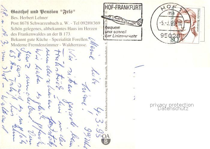 73012020 alte Postkarte Schwarzenbach Saale Gasthof und Pension Fels postalisch gelaufen Erhaltung siehe scans [WerneD78] KatCode: 11110009475168