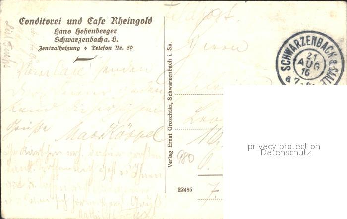 32212348 alte Postkarte Schwarzenbach Saale Konditorei und Cafe Rheingold postalisch gelaufen Feldpost Erhaltung siehe scans KatCode: 11110009475168