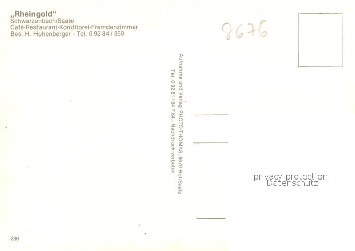 73086904 Schwarzenbach Saale Restaurant Rheingold postalisch nicht gelaufen Erhaltung siehe scans [KathaD81] KatCode: 11110009475168