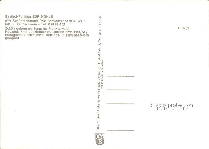 72276919 Schwarzenbach Wald Gasthof Pension Zur Muehle Schuebelhammer postalisch nicht gelaufen Erhaltung siehe scans KatCode: 11110009475169