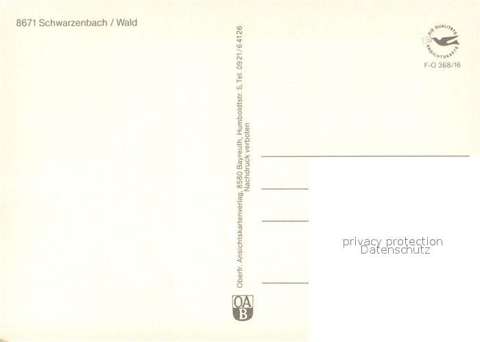 73735509 Schwarzenbach Wald Panorama Christian Keysser Haus Schule Kirche Hallenbad Marktplatz postalisch nicht gelaufen Erhaltung siehe scans [FriedD77] KatCode: 11110009475169