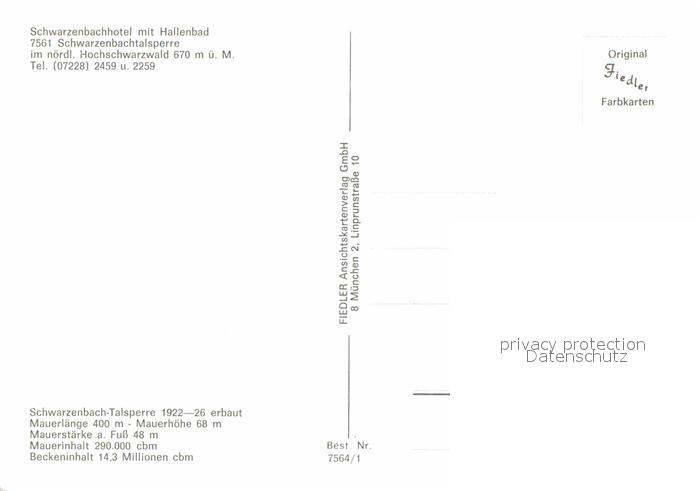 72742963 Schwarzenbachtalsperre Schwarzenbachhotel mit Hallenbad postalisch nicht gelaufen Erhaltung siehe scans [LiesaD40] KatCode: 11110008216013