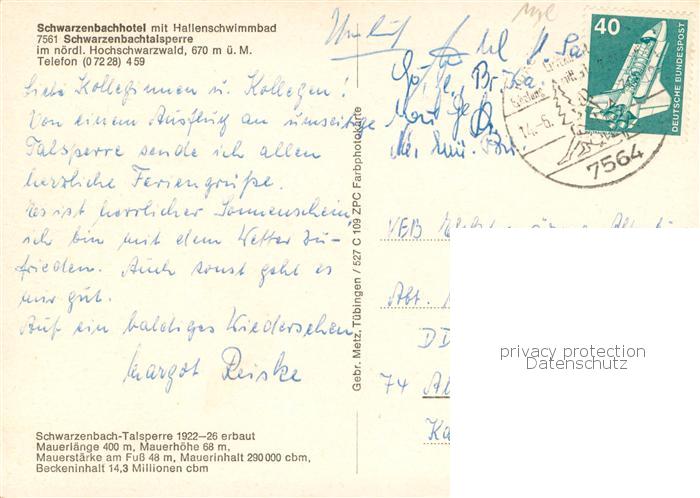 73779671 alte Postkarte Schwarzenbachtalsperre Schwarzenbachhotel Terrasse postalisch gelaufen Erhaltung siehe scans [WerneD78] KatCode: 11110008216013
