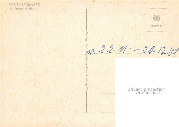 72771089 alte Postkarte Schwarzenbek Kurheim Kollow postalisch gelaufen Erhaltung siehe scans [WerneD78] KatCode: 11110001053116