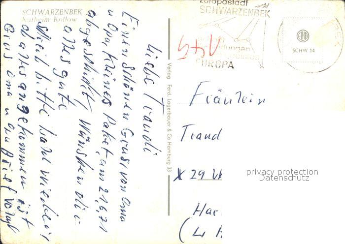 72598734 alte Postkarte Schwarzenbek Kurheim Kollow postalisch gelaufen Erhaltung siehe scans [LiesaD40] KatCode: 11110001053116