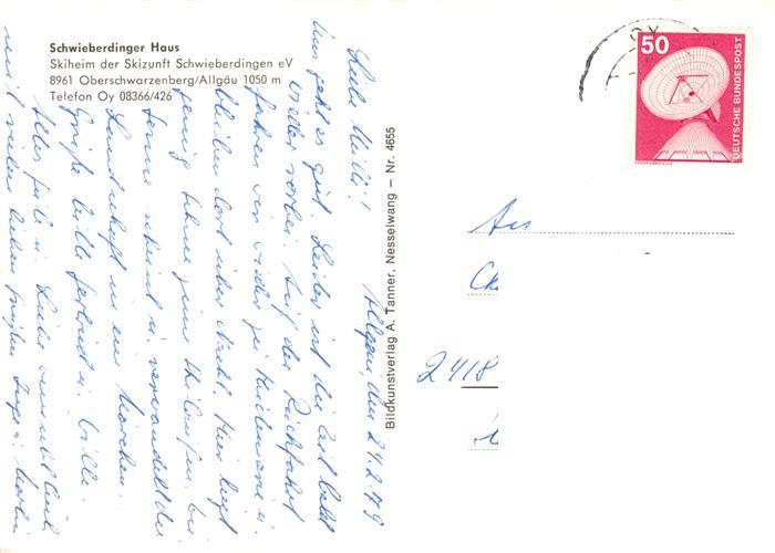 73902909 alte Postkarte Schwarzenberg Allgaeu Schwieberdinger Haus Skiheim Panorama postalisch gelaufen Erhaltung siehe scans [WerneD78] KatCode: 11110009372115