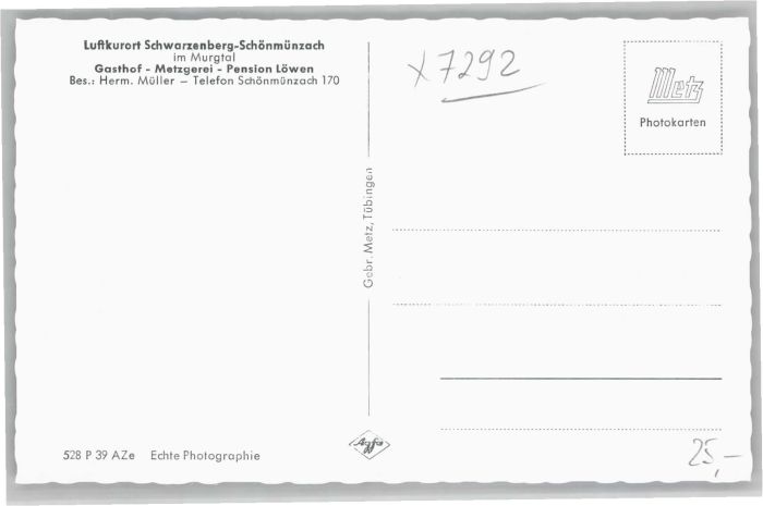 40717379 Schwarzenberg Baiersbronn Gasthof Metzgerei Pension Löwen KatCode 11110008237004