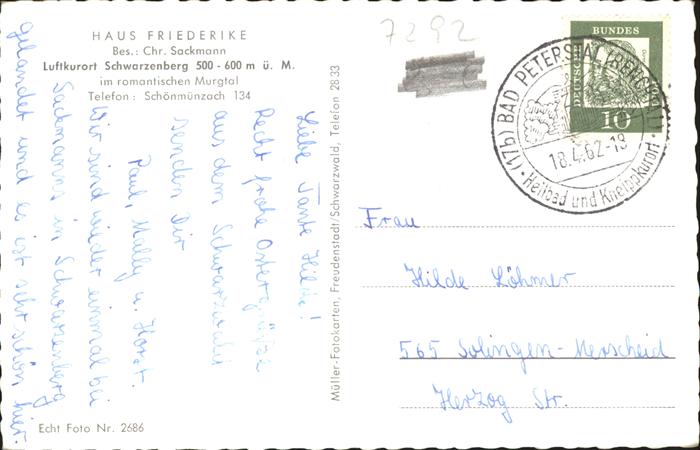 Schwarzenberg Baiersbronn Haus Friederike Chr. Sackamnn