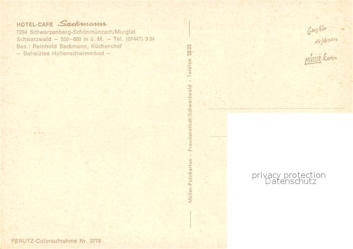 73736959 Schwarzenberg Baiersbronn Hotel-Cafe Sackmann m. Hallenbad postalisch nicht gelaufen Erhaltung siehe scans [LiesaD40] KatCode: 11110008237004