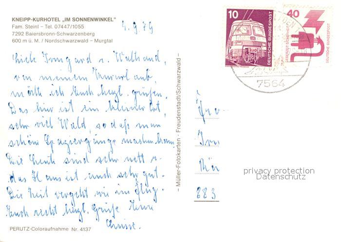 73165625 alte Postkarte Schwarzenberg Baiersbronn Kneipp Kurhotel Im Sonnenwinkel postalisch gelaufen Erhaltung siehe scans [WerneD78] KatCode: 11110008237004