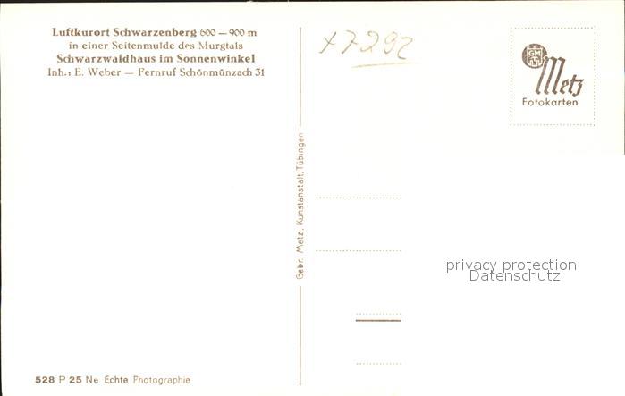 41801031 Schwarzenberg Baiersbronn Schwarzwaldhaus Sonnenwinkel postalisch nicht gelaufen Erhaltung siehe scans KatCode: 11110008237004