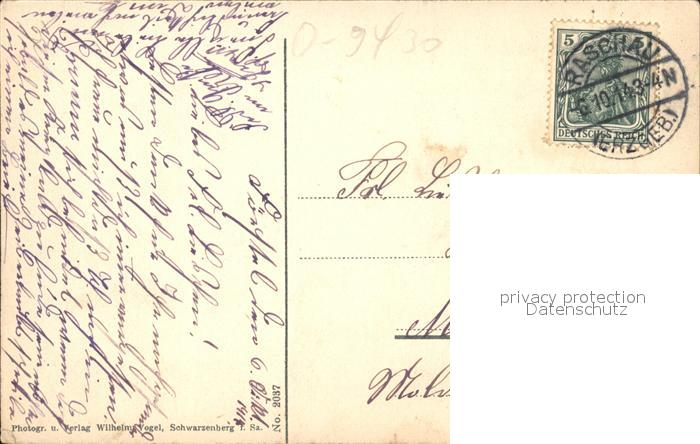 31821730 alte Postkarte Schwarzenberg Erzgebirge postalisch gelaufen Erhaltung siehe scans KatCode: 11110014191300
