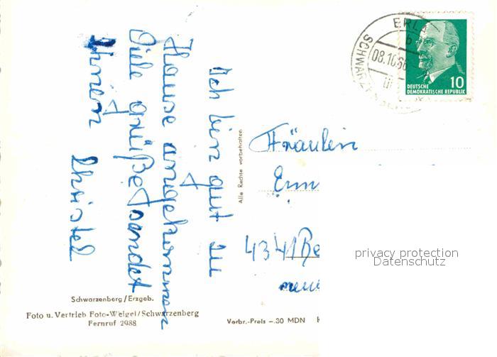 72650182 alte Postkarte Schwarzenberg Erzgebirge postalisch gelaufen Erhaltung siehe scans [NatalD47] KatCode: 11110014191300