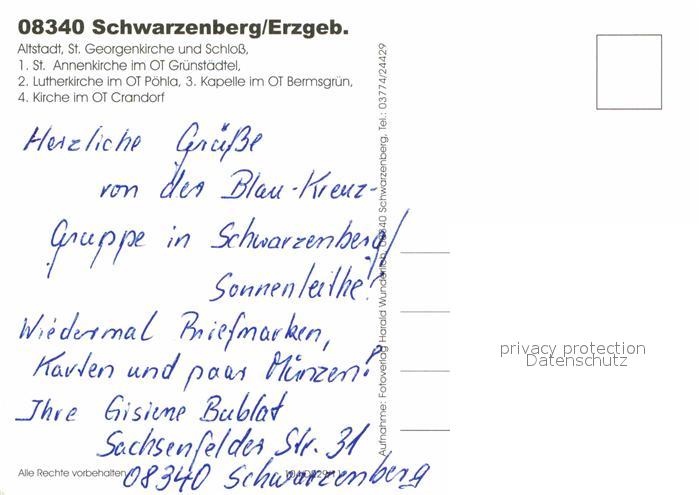 72772808 Schwarzenberg Erzgebirge Altstadt St Georgenkirche und Schloss St Annenkirche Lutherkirche Kapelle Kirche postalisch nicht gelaufen Erhaltung siehe scans [WerneD78] KatCode: 11110014191300
