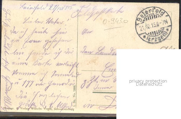 42267013 alte Postkarte Schwarzenberg Erzgebirge Ansicht mit Schloss und Kirche postalisch gelaufen Feldpost Erhaltung siehe scans KatCode: 11110014191300