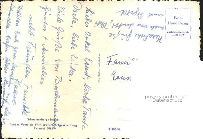 72351289 Schwarzenberg Erzgebirge Durchblick vom Waldrand aus Handabzug postalisch nicht gelaufen Erhaltung siehe scans KatCode: 11110014191300