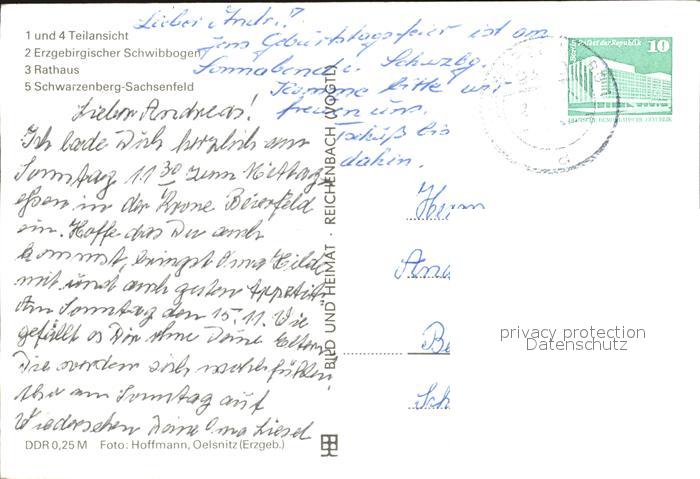 72396812 alte Postkarte Schwarzenberg Erzgebirge Erzgebirgischer Schwibbogen Rathaus Sachsenfeld postalisch gelaufen Erhaltung siehe scans KatCode: 11110014191300