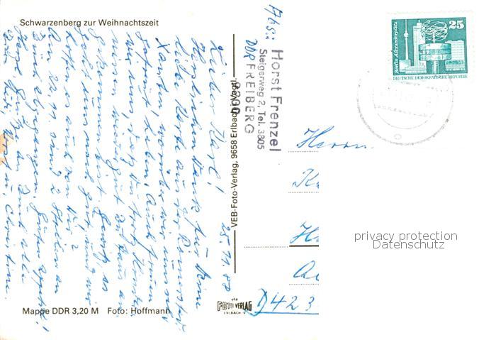 73833800 Schwarzenberg Erzgebirge Gasse Pferdekutsche postalisch gelaufen Erhaltung siehe scans [FriedD77] alte Postkarte Frie Katcode 11110014191300
