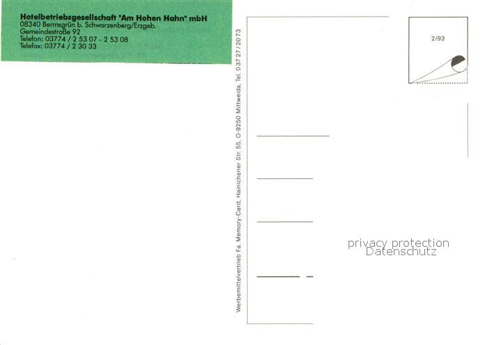 73721875 Schwarzenberg Erzgebirge Hotel Am Hohen Hahn Winter postalisch nicht gelaufen Erhaltung siehe scans [LiesaD40] KatCode: 11110014191300