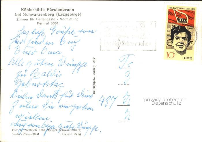 72017811 alte Postkarte Schwarzenberg Erzgebirge Koehlerhuette Fuerstenbrunn Gaststube postalisch gelaufen Erhaltung siehe scans KatCode: 11110014191300