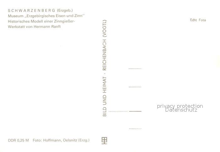 72963918 Schwarzenberg Erzgebirge Museum Erzgebirgisches Eisen und Zinn Historisches Modell Zinngiesserwerkstatt Hermann Ranft postalisch nicht gelaufen Erhaltung siehe scans [FriedD77] KatCode: 11110014191300
