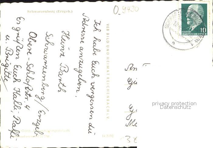 72092051 alte Postkarte Schwarzenberg Erzgebirge Ortsansicht mit Kirche postalisch gelaufen Erhaltung siehe scans KatCode: 11110014191300