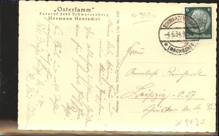 40955227 Schwarzenberg Erzgebirge Osterlamm Gasthaus NZ4 postalisch gelaufen Alte Ansichtskarte Postkarte alte Postkarte Katcode 11110014191300