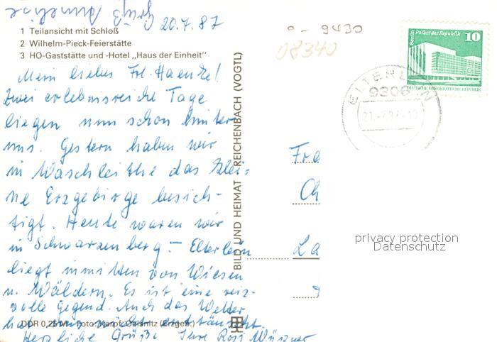 73567084 alte Postkarte Schwarzenberg Erzgebirge Panorama mit Schloss Wilhelm Pieck Feierstaette HO Gaststaette Hotel Haus der Einheit postalisch gelaufen Erhaltung siehe scans [FriedD77] KatCode: 11110014191300