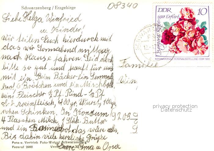 73567162 alte Postkarte Schwarzenberg Erzgebirge Partie in der Altstadt postalisch gelaufen Erhaltung siehe scans [FriedD77] KatCode: 11110014191300