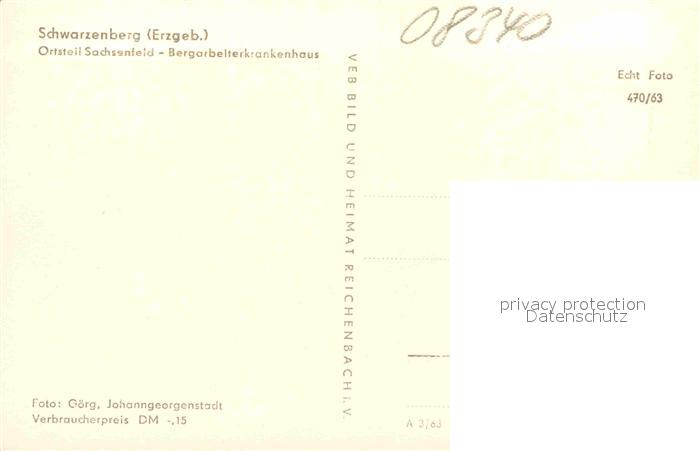 72641892 Schwarzenberg Erzgebirge Sachsenfeld postalisch nicht gelaufen Erhaltung siehe scans [AndreD76] KatCode: 11110014191300