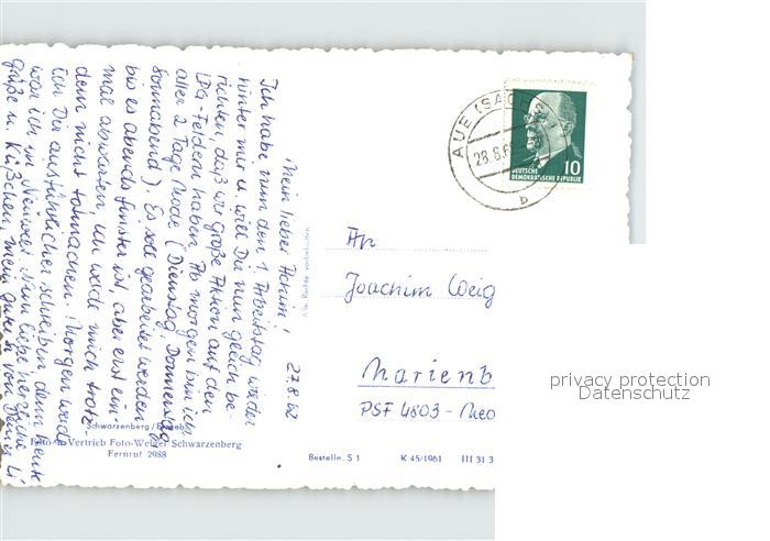 72399984 alte Postkarte Schwarzenberg Erzgebirge Schloss postalisch gelaufen Erhaltung siehe scans KatCode: 11110014191300