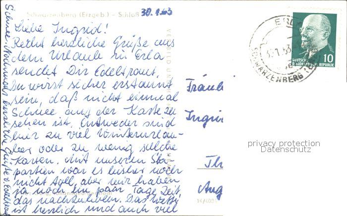 72357458 alte Postkarte Schwarzenberg Erzgebirge Schloss postalisch gelaufen Erhaltung siehe scans KatCode: 11110014191300