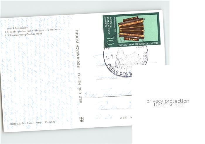 72384195 alte Postkarte Schwarzenberg Erzgebirge Schwibbogen Rathaus Sachsenfeld postalisch gelaufen Erhaltung siehe scans KatCode: 11110014191300