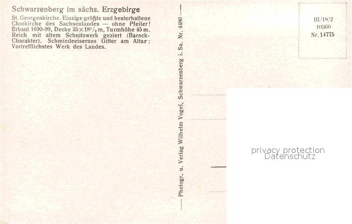 72632085 Schwarzenberg Erzgebirge St Georgenkirche Innenansicht postalisch nicht gelaufen Erhaltung siehe scans [FriedD77] KatCode: 11110014191300