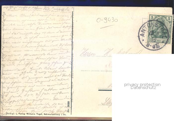 42267025 alte Postkarte Schwarzenberg Erzgebirge Stadtbild mit Kirche und Schloss postalisch gelaufen Erhaltung siehe scans KatCode: 11110014191300