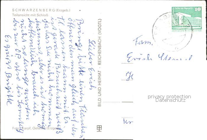 72368466 alte Postkarte Schwarzenberg Erzgebirge Teilansicht Schloss postalisch gelaufen Erhaltung siehe scans KatCode: 11110014191300