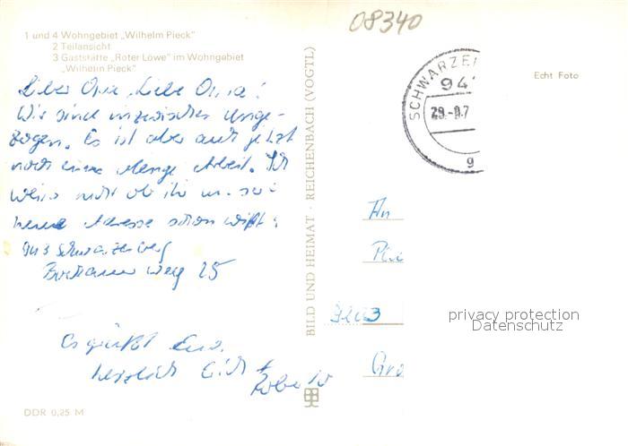 73567180 alte Postkarte Schwarzenberg Erzgebirge Wohngebiet Wilhelm Pieck Gaststaette Roter Loewe Plattenbauten postalisch gelaufen Erhaltung siehe scans [FriedD77] KatCode: 11110014191300