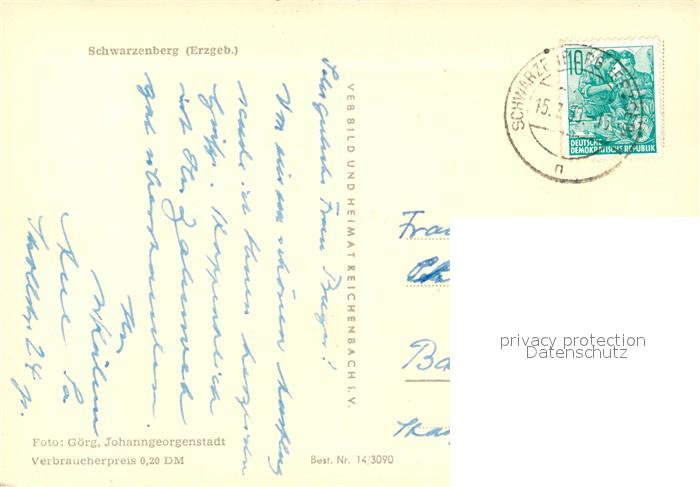 73071155 alte Postkarte Schwarzenberg Erzgebirge postalisch gelaufen Erhaltung siehe scans [NatalD47] KatCode: 11110014191300