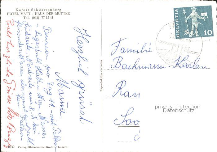 11648421 alte Postkarte Schwarzenberg LU Hotel Matt Haus der Muetter postalisch gelaufen Erhaltung siehe scans KatCode: 11470120385888